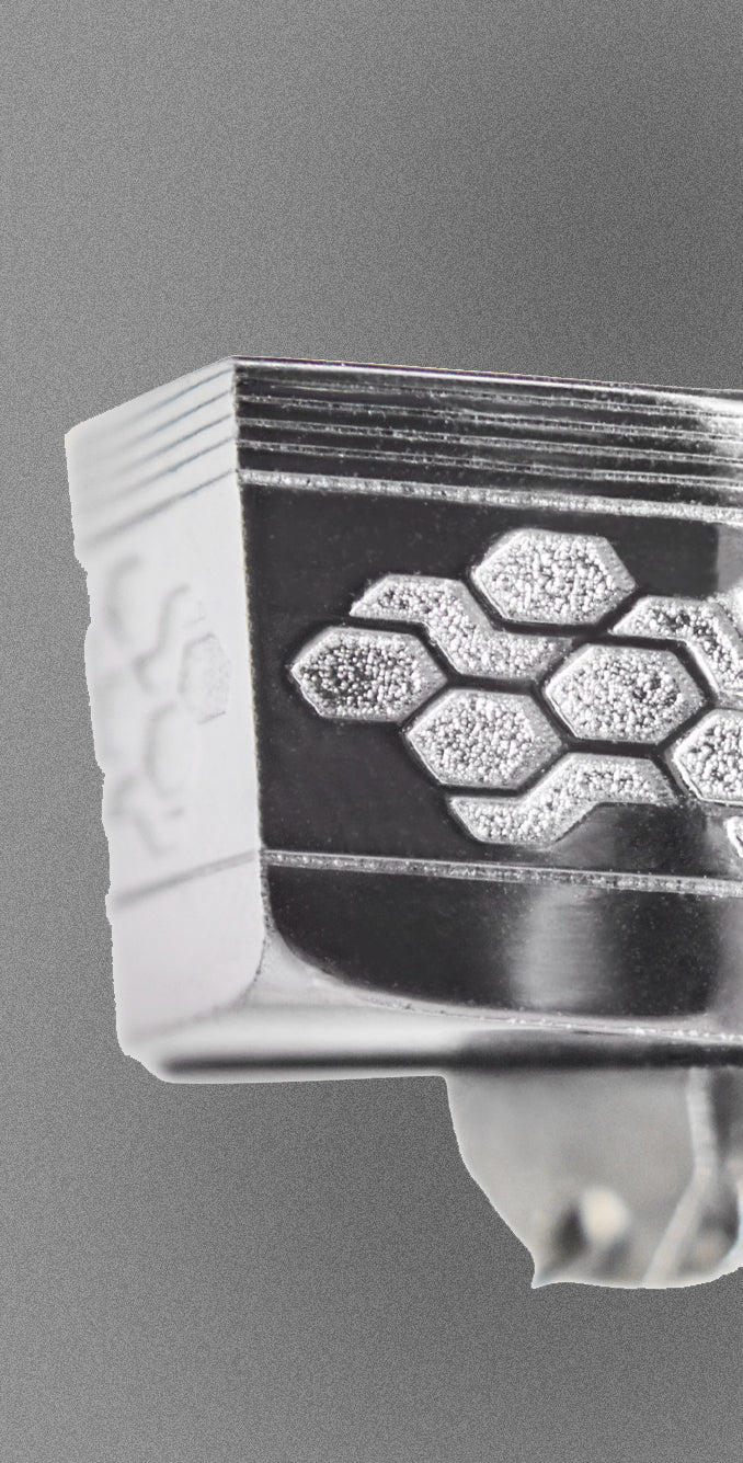 By simply aligning the Newton Clamp over the spindle and resting it gently over your record, the spring loaded suspension will automatically adjust (in real time) accordingly to exert ideal downforce, pressing the record onto the platter for perfect stability. The Newton Clamp is compatible with all major turntables models and pairs with additional accessories such as felt, rubber, cork or leather mats. Sporting a reflective chrome finish and carbon fibre accents, this impactful design will not only improve the sonic ability of your turntable, but also the aesthetic.